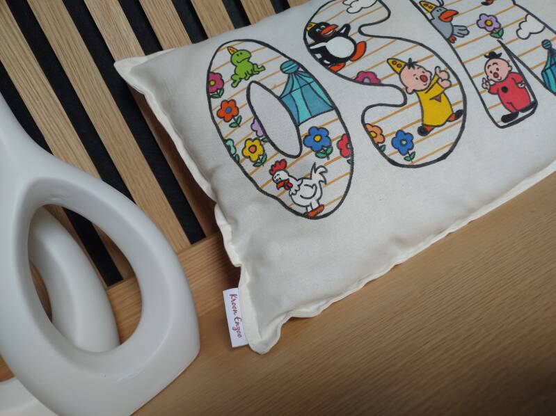 - kussen met naam op de voorkant (en eventueel geboortedatum): 25€