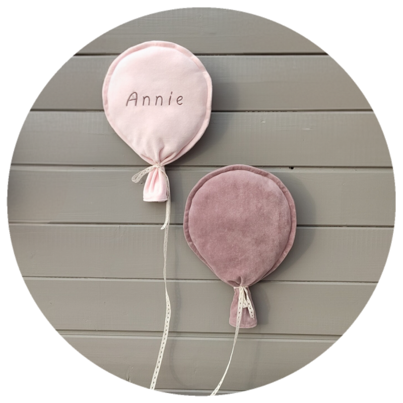 De ballonnen worden gemaakt van een zachte velvet stof en zijn beschikbaar in volgende kleuren: lichtblauw, donkerblauw, beige, okergeel, roestbruin, mintgroen, legergroen, lichtroze en oudroze.