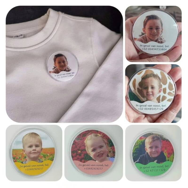 De buttons hebben een diameter van 5 cm en kunnen opgespeld worden op de tshirt, rugzak, jasje van je kindje.
