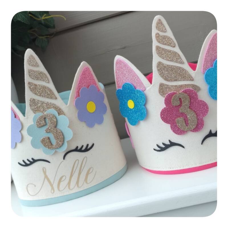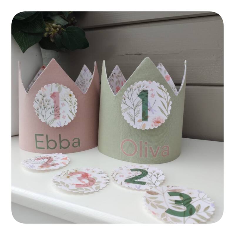 Hieronder vind je voorbeelden van verjaardagskronen, gemaakt op basis van het geboortekaartje:
