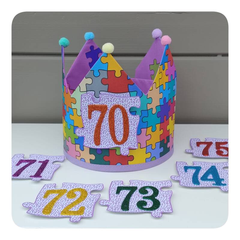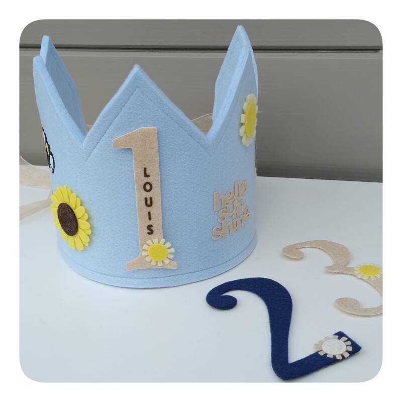 De sluiting achteraan de kroon kan gemaakt worden met velcro, linten of met een gestoffeerde rekband. Welke sluiting je ook kiest, elke kroon groeit mee met het hoofdje van je jarige kapoen. De verwisselbare cijferbuttons zorgen ervoor dat je jaren feestplezier zal hebben.